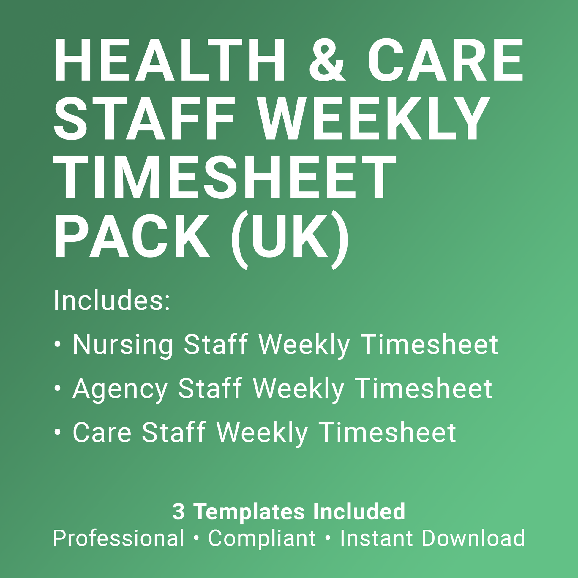 Health & Care Staff Weekly Timesheet Pack (UK, A4 Fillable PDFs) – Nursing, Agency & Care Templates (Docuqo 0094)